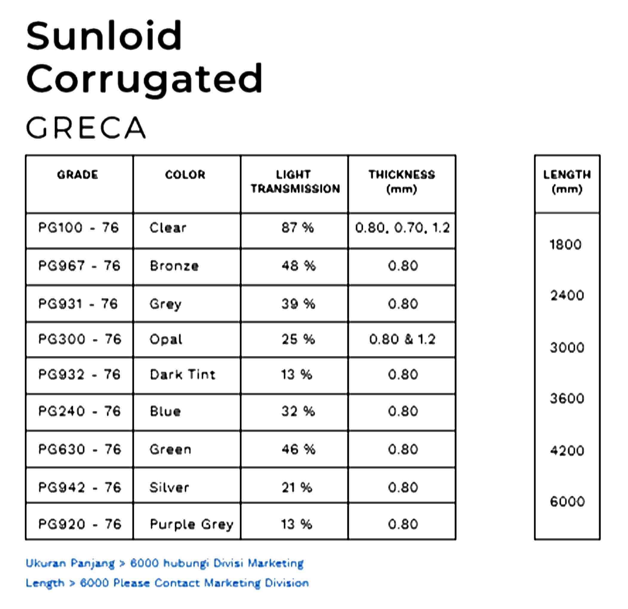 Tabel Spesifikasi Atap Sunloid Corrugated (Gelombang) GRECA